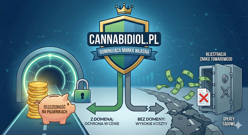 Cannabidiol jest nazwą związku chemicznego, ma status nazwy generycznej. Oznacza to, że nikt – ani Ty, ani Twoja konkurencja – nie może zarejestrować jej jako wyłącznego znaku towarowego.Twoja korzyść: Oszczędzasz fortunę na prawnikach, rzecznikach patentowych i opłatach w Urzędzie Patentowym. Bezpieczeństwo: Masz gwarancję, że za X lat żadna korporacja nie wyśle Ci pisma przedprocesowego z żądaniem oddania domeny. Jesteś nietykalny, bo używasz nazwy, która należy do świata nauki, a Ty masz na nią najlepszy adres w sieci.